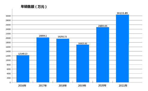 随着不断地资金投入与技术投入,企业的年销售额稳步增长,至2015年,全年销售额已破亿;并于2021年,突破3亿;2024年突破3.5亿。